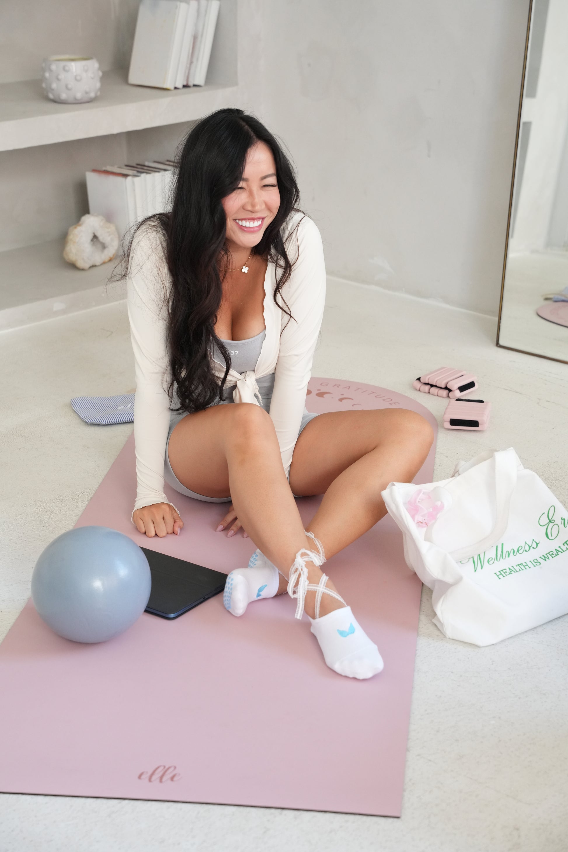 A lace up ballerina style sock with angel wings embroidery. Our take on embodying angel numbers into your practice; 111 intuition, 222 alignment, 333 support, 444 protection, 555 change, 666 gratitude, 777 luck, 888 balance and 999 release. We're hoping you take some of these values and apply them inside & outside of the studio. Grounded in gratitude, always.