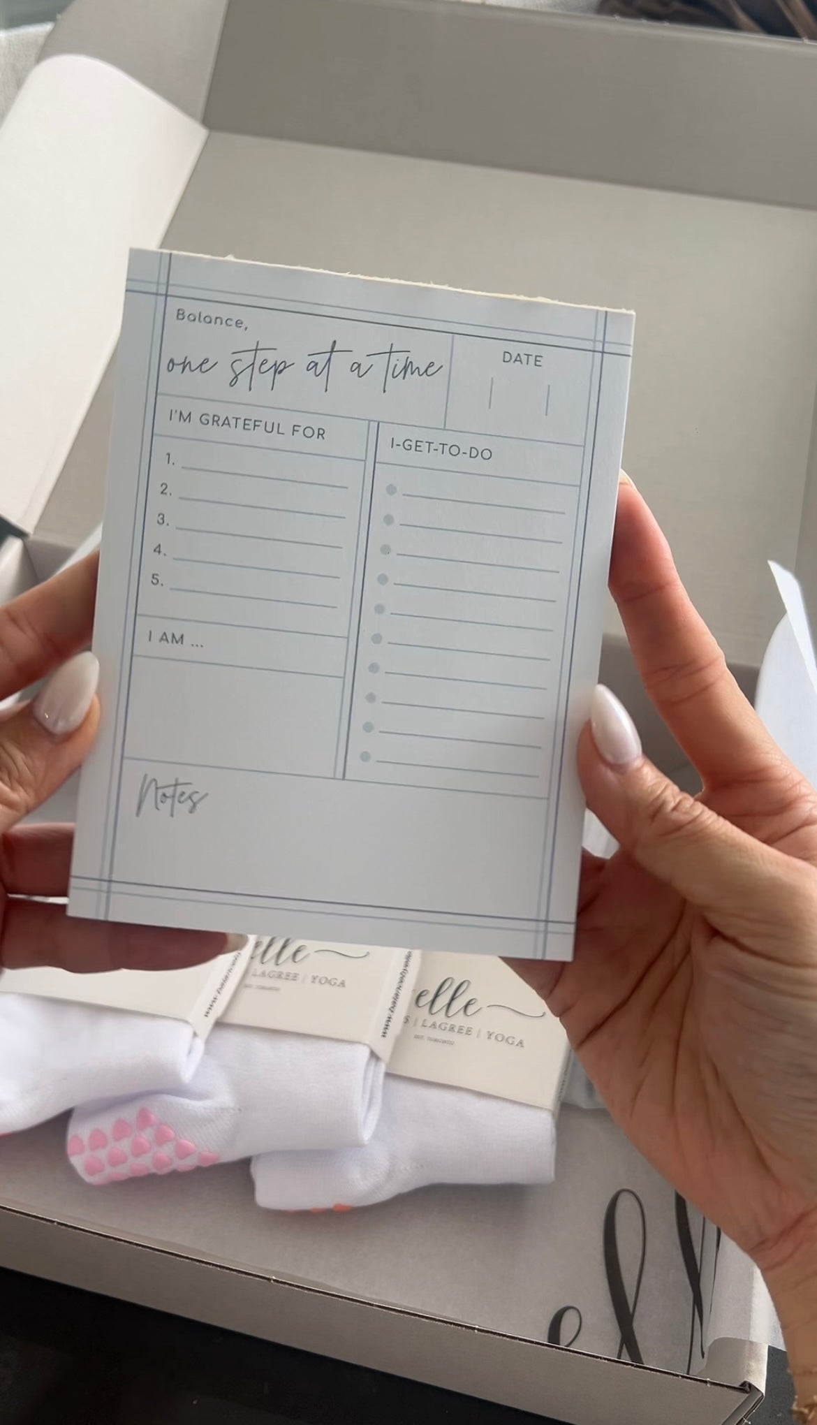 ABOUT THIS ITEM: Share the spirit of the season with our Holiday Affirmation Bundle — a curated set of 4 core grip socks (I'm Peachy, Cherrished, Blossoming & Protected) from our collection, each designed to inspire grounded movement and daily affirmation. To help you carry that energy beyond the mat, every bundle includes a FREE Productivity & Gratitude Notepad.
