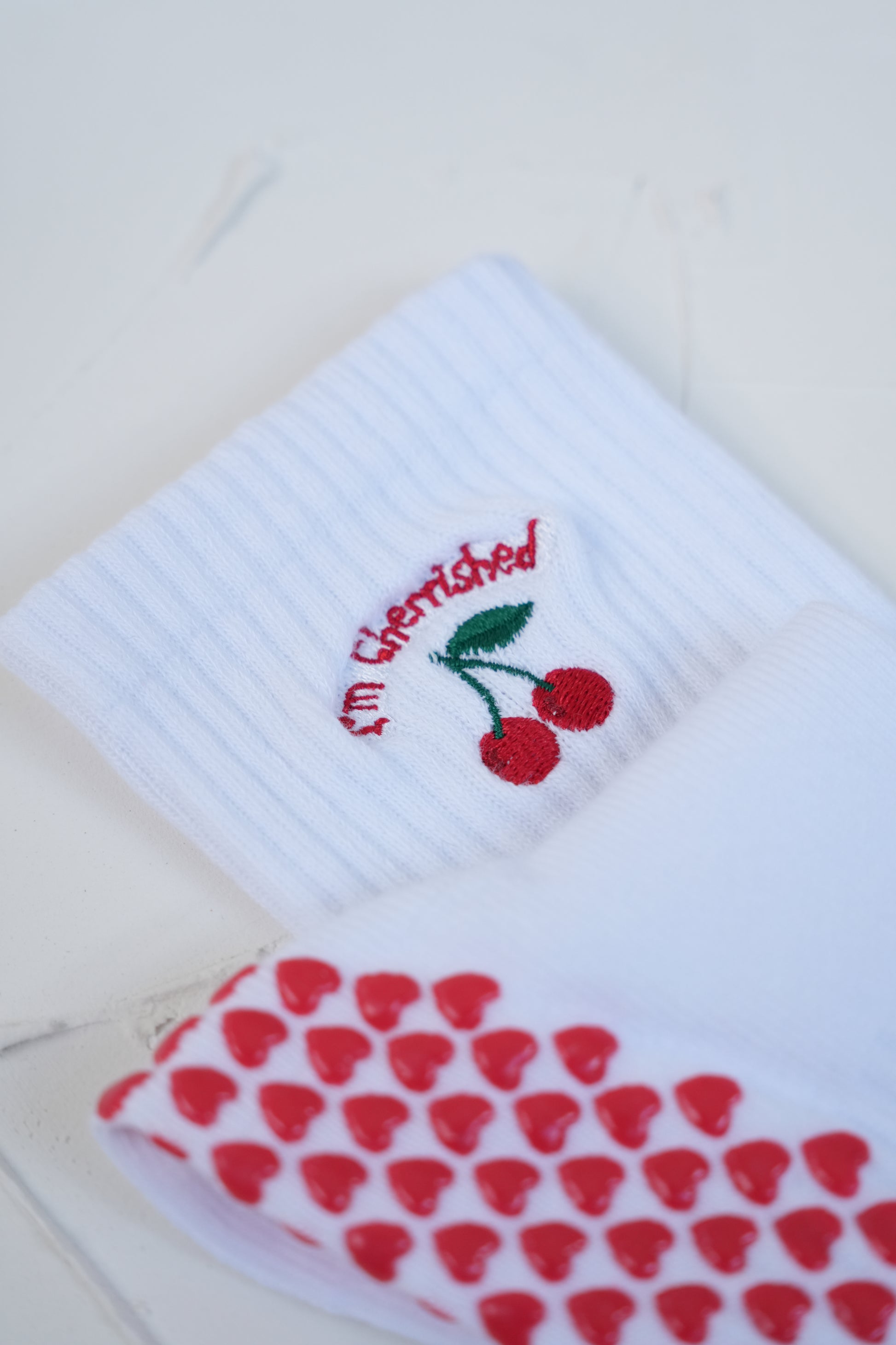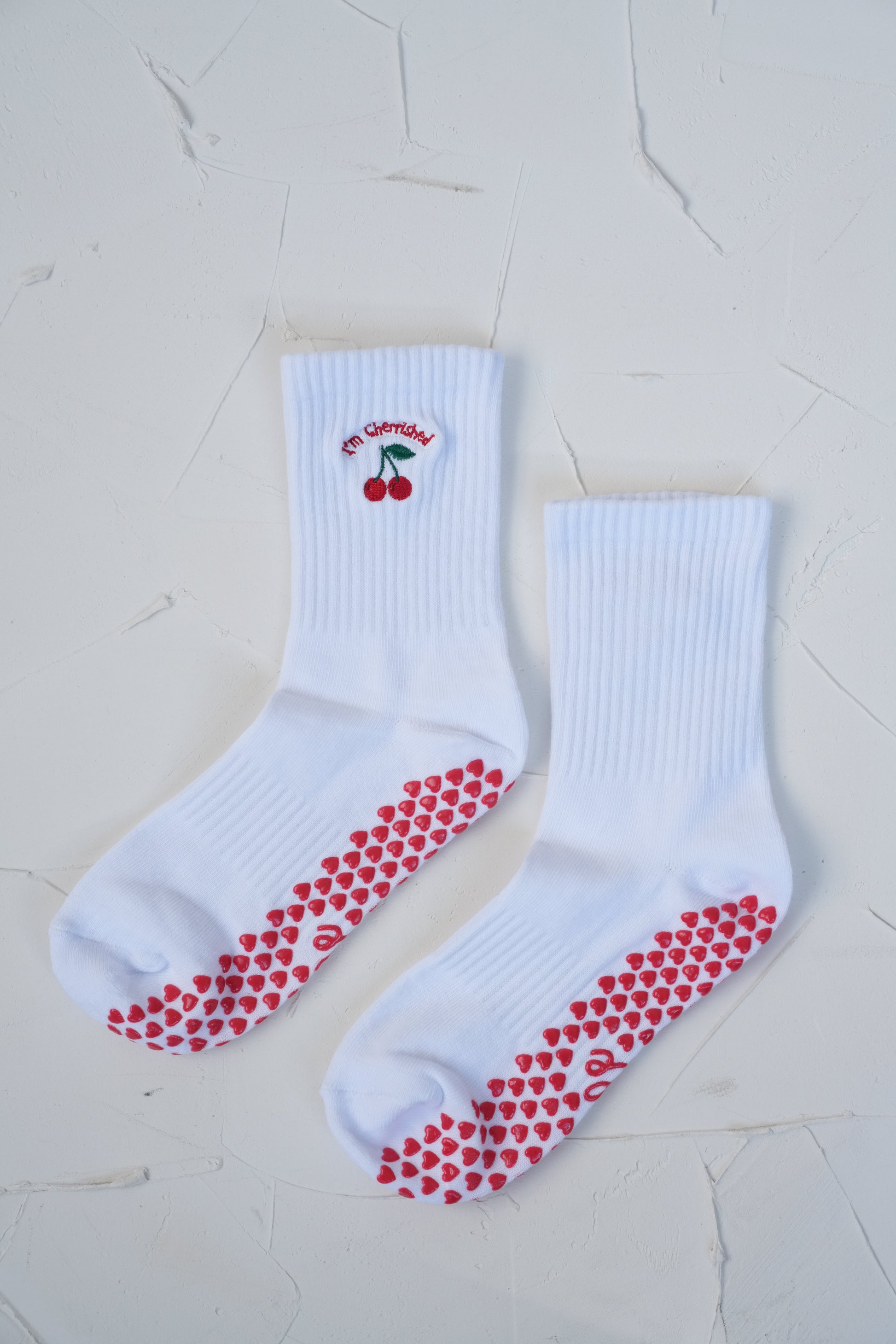 Move with confidence, intention, and clarity in our I'm Cherrished Pilates crew sock. Crafted for balance and stability, these non-slip socks provide superior grip, comfort, and support. Each pair is a daily reminder that you are a treasure, you are loved, you are cherished and to move with purpose.